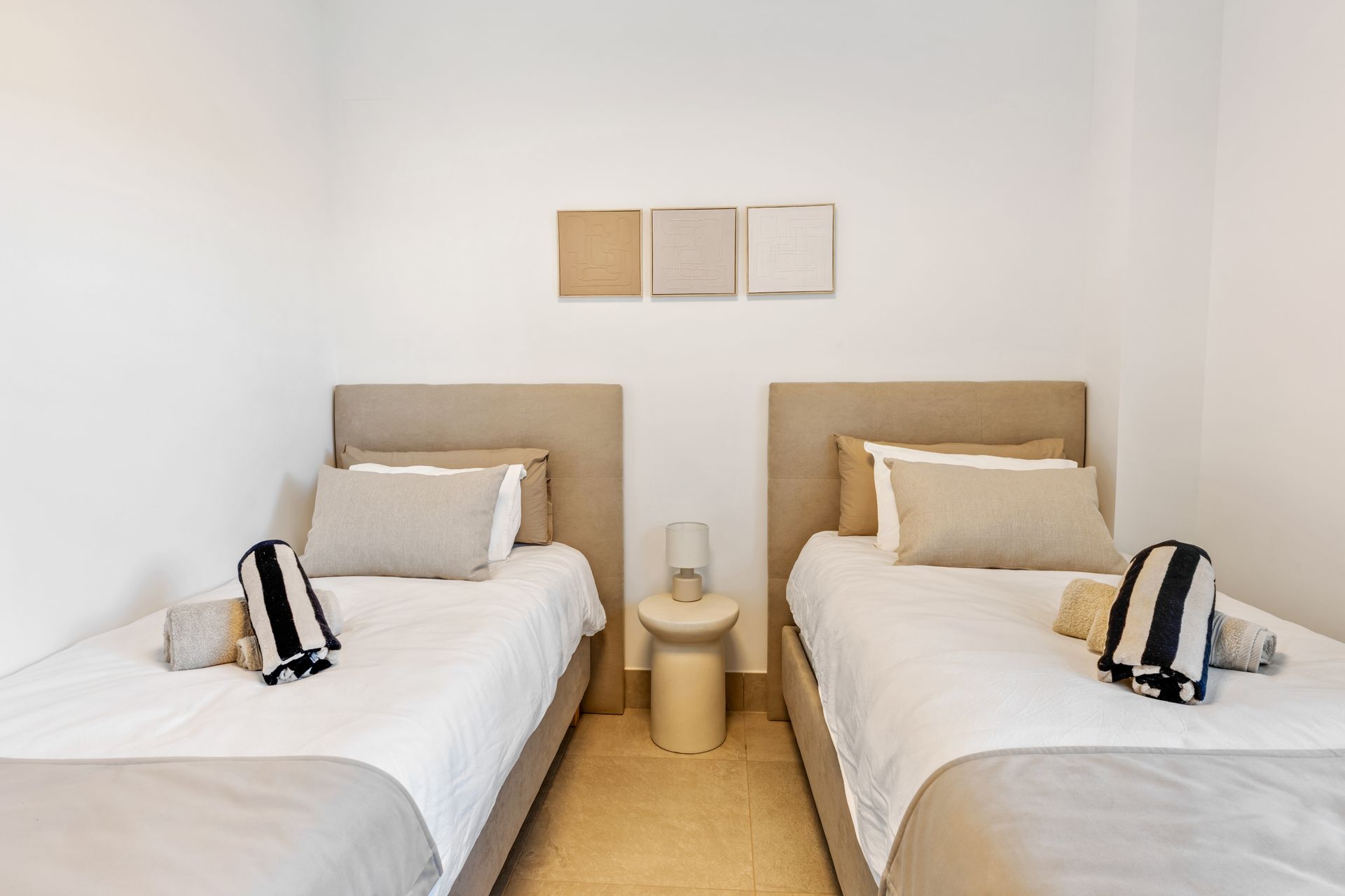 Dit stijlvolle appartement beschikt over drie comfortabele slaapkamers en twee moderne badkamers, ideaal voor een ontspannen verblijf. Vanuit de woonkamer stap je zo het ruime terras op, met een fijne lounge en eettafel om optimaal te genieten van lange avonden. Het appartement is van alle gemakken voorzien, zoals gratis WiFi, een Smart TV en airconditioning in alle kamers.